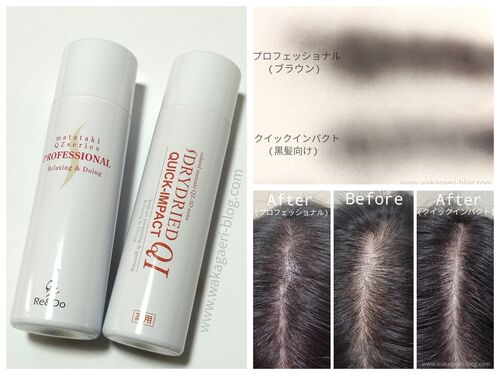 育毛発毛専門店リアンドゥの増毛スプレーQZプロフェッショナルとクイックインパクトを比較して口コミ!どっちが生え際の薄毛やつむじハゲを自然に隠せるのか、汗や水に強いのか実際に女性の黒髪に使って比べてみました。