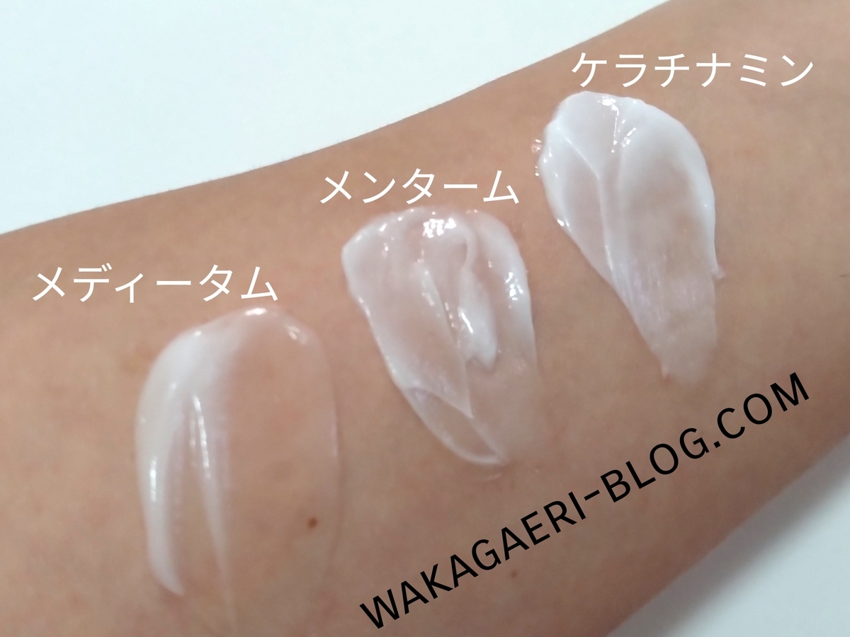 ▼上からケラチナミン、メンタームU20クリーム、メディータム20DXクリーム