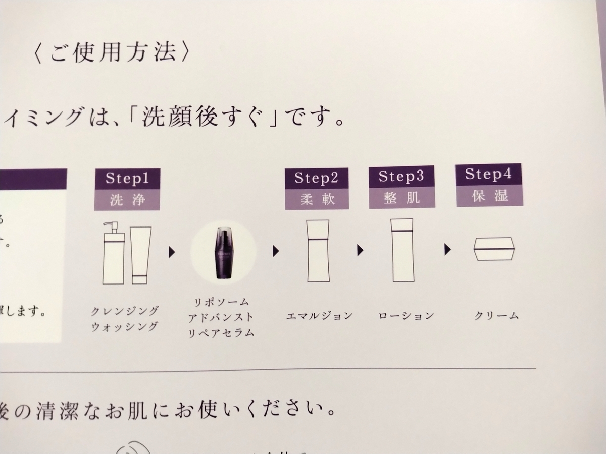 ▼化粧水を使うタイミングはリポソームアドバンストリペアセラムの後